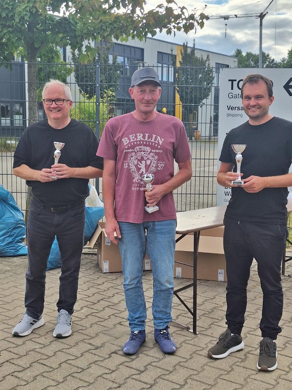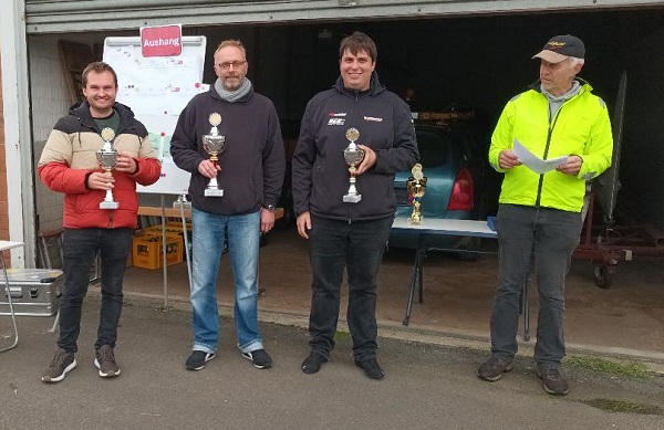Felix drehte bei der zweiten Veranstaltung den Spieß um, Diesmal Platz 1 für ihn vor dem nochmals stark fahrenden Stefan. Bei mir fiel wieder eine Pylone in Ohnmacht, zufrieden bin ich trotzdem. Denn bei meinen Fahrten verlor ich auf dem doch sehr selektiven Parcous nur rund 1,5 Sekunden auf Felix, der sogar Platz 3 im Gesamt belegte. Ich denke, das ist nicht so schlecht. Übrigens habe ich verschiedene Fahrweisen ausprobiert, um möglichst schnell rüberzukommen. Mal bin ich aus dem zweiten Gang nicht rausgekommen, dann habe ich zeitweise auch den dritten eingelegt. Mein üblicher Fahrstil ist so ne Art Vollgas oder gar kein Gas. Die schnellste Zeit gelang mir aber in Geeste mit der für mich eher neuen Variante Halbgas und sauber durchpendeln. Auch mit 59 Jahren lerne ich noch dazu. (Augenzwinker) Alles in allem war das ein angenehmer Tag in Geeste. Schönen Dank an den Club. Wir sind zufrieden zurückgefahren.