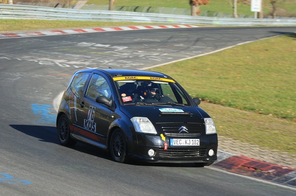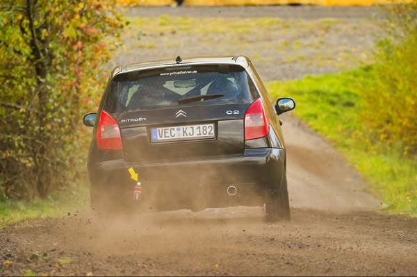 Am Freitagabend sollten bereits die ersten beiden Prüfungen gefahren werden. Mir ging es durch den Infekt extrem mies. Also fuhren wir in der Pause vor dem Start zu einer Apotheke. Dort hat man mir allerhand "Dopingmittel" mitgegeben, damit ich kurzfristig wieder in die Puschen komme. Zum Start der ersten Prüfung bei Dunkelheit ging es mir dann tatsächlich gar nicht mal so schlecht, es konnte also losgehen. Wir wollten uns ja wieder am Lenkrad abwechseln, den Freitagabend sollte Felix das Lenkrad drehen. Und das klappte auf WP1 schon mal richtig gut. Zwar ging es teilweise ordentlich bergauf, sodass dem kleinen C2 die Puste ausging, im Ziel hatten wir tatsächlich aber ein paar Teams hinter uns gelassen, die Wertungsprüfung machte auch Spaß. Juhuu. WP2 wurde nach einem etwas heftigeren Unfall dann leider abgebrochen. Wir bekamen eine errechnete Zeit. Nach der ersten Etappe lagen wir bereits auf Platz 61. Die WP3 am Samstagmorgen wollte ich dann fahren. Pustekuchen, leider wieder Abbruch wegen eines Unfalls. Okay, dann zur WP4. Diese Prüfung war sehr sehr schnell, alles 4er und 5er Kurven, was mir eigentlich gut liegt. Mit meiner Fahrt waren wir beide auch zufrieden. Blöd nur, dass es viel berghoch ging, denn dafür hat der C2 zu wenig Leistung. In WP5 durfte Felix wieder dran. Etwa fünf Kilometer Geballere durch ein Waldstück, dann rauf auf die Nürburgring-Nordschleife. Allerdings diese in entgegengesetzer Richtung! Felix fuhr schnell und gleichzeitig vorsichtig, denn es war stellenweise super rutschig. Der von unserem lieben Bekannten Sebastian zur Verfügung gestellte Aufschrieb passte und wir kamen gut durch die Prüfung. So viel Glück hatte nicht jeder, es gab auch hier verbogenes Blech.